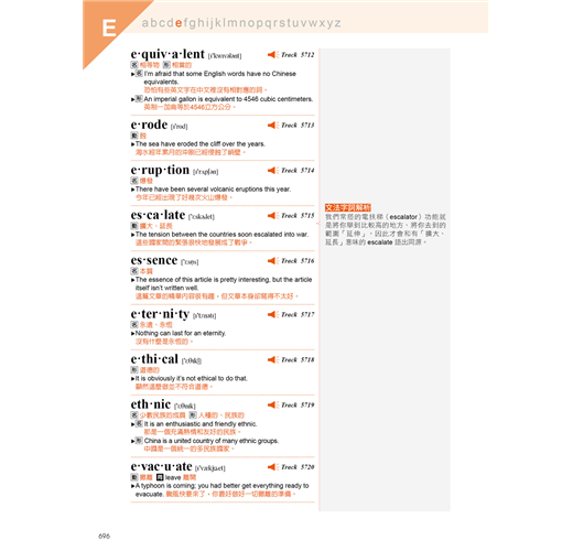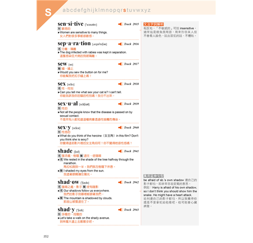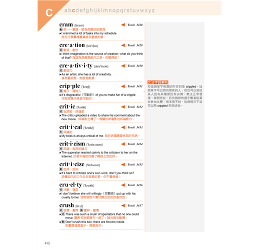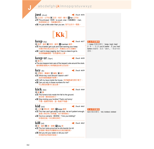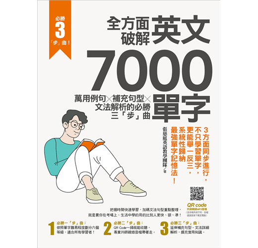 滿分攻略2:一字多用就可事半功倍看到密密麻麻文字就會兩眼昏花、慌張害怕?別擔心,本書按照字母排序,詳細列出每個單字的常用詞義與詞性,且根據不同詞性,給予專屬例句示範用法,甚至補充了同、反義字,常用片語,運用聯想法就能一次打包、相當方便!
