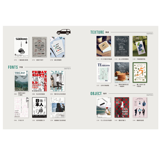 放滿插圖/用線條表現/隨興排列/插圖是重點/結合手寫字/藏在標題中