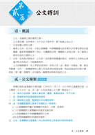 將公文、作文、測驗三大主題以表格方式整理,使初學者能一窺國考國文之核心領域,是一般坊間國文用書所不足之處。