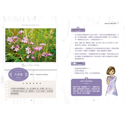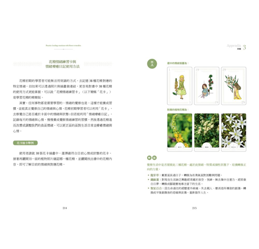 2.◆多重編製,體貼設計=38種完整的花精介紹書+專業插畫家親筆繪製精製絕美的花精情緒療癒卡+情緒療癒日記=是最好的自我療癒工具書。