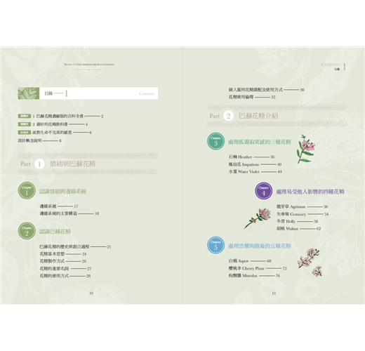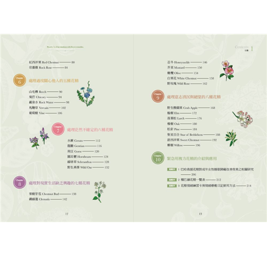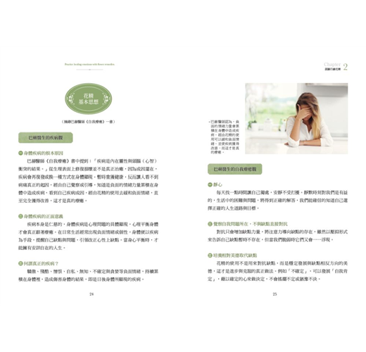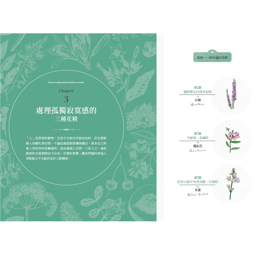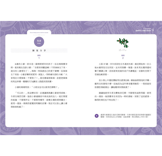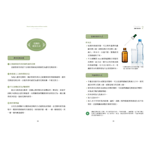 加上書中清楚說明,許多植物在身心的情緒影響,和花精使用的範圍,將這本書認真的仔細研讀幾次,與其說是本工具書,還不如放在書桌前,當成教科書更為貼切喔!
