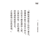 日常就是一場華麗的冒險,隨時會有突如其來的挑戰與複雜難解的問題,就算只是平靜無波的日子,也是一種抵抗枯燥的修行。我們在人生的岔路口徘徊,或身陷在窮忙的泥淖裡,那種度不過去的關卡,可能是情感的放不下,也許是慾念的放不開,又或許是單純的智慧未達。所有明暗的時刻都一樣,好是一種狀態、不好也是一種日子。擁抱黑暗就不怕找不著光,習慣寒冷就不怕找不到火,生活並不總是盡如人意,只要自己相信每一次的過渡,即使過程狼狽辛苦,之後都得以安然度過。