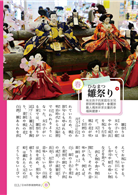女兒節是慶祝女孩健康成長的儀式。因為原本是在桃花盛開的舊曆3月3日舉行,也被稱為桃花節。從明治時代起變成在陽曆舉行。在有女孩的家庭,一旦女兒節快要來臨,就會擺放雛人偶,供奉菱餅或桃花、白酒、女兒節的年糕塊來慶祝。而且,當天也會吃散壽司和文蛤的湯等。