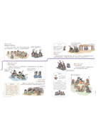 扉頁──熱鬧滾滾的華麗舞臺∣每位主角出場都有氣勢浩大的場面,在最開始的「扉頁」會以一個跨頁全景與一段前言深入介紹當天的主角,讓你認識這位人物的事蹟、知道會走什麼路線,了解當天體驗的行程表。