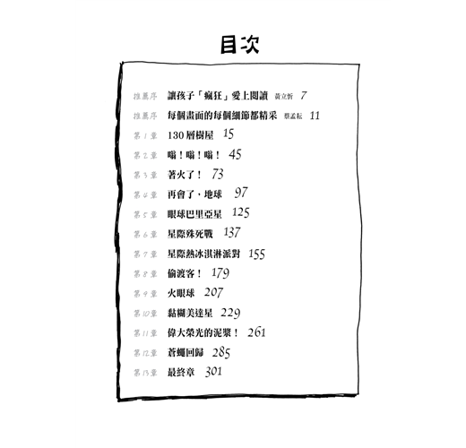 樹屋被綁架到外太空,發生了不可思議的事件,每每在情節高潮迭起時,我忍不住鼓掌讚嘆作者的豐富想像力,怎麼想得到這種轉折啦!──蔡孟耘(宜蘭縣竹林國小閱讀推動教師/小壁虎老師)