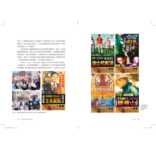 「這本書由振愷執筆,為求盡善盡美,他花了一段時間,細心解讀當時報刊資訊、參考史料、檔案等各式各樣的記錄,並口述訪問社會賢達,做一系列的收集,唯恐漏掉一點珍貴的訊息,過程雖艱辛,但整個流程井然有序。身為全美戲院第二代負責人,深感任重而道遠,寄望藉著這本書來談談親身經歷,帶著大家走一趟時光隧道,心中自然具有一份格外濃烈的感受,或許這樣的感受能帶給大家許多恬然自得、洞察人心,觀察世情的人生智慧。」