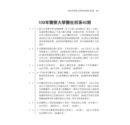 收錄高普考、警察特考等試題及解析,保證時效最新、解析最精、收錄最全。歷年試題的統整,利於掌握考試最新脈動與命題方向。經過名師詳解,類似的題目再出個一百次,也不害怕!輕鬆學習、快速理解,掌握命題趨勢,必定能在考場所向披靡!