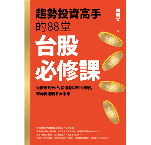 毓棠這本《趨勢投資高手的88堂台股必修課》,即是從大家心中可能會有的88個提問出發,基本面、技術面、籌碼面、ETF投資、存股,乃至投資心理學,通通系統化地幫你解答,適合小白,也適合已經有點基礎但想讓觀念更周全的投資朋友閱讀。