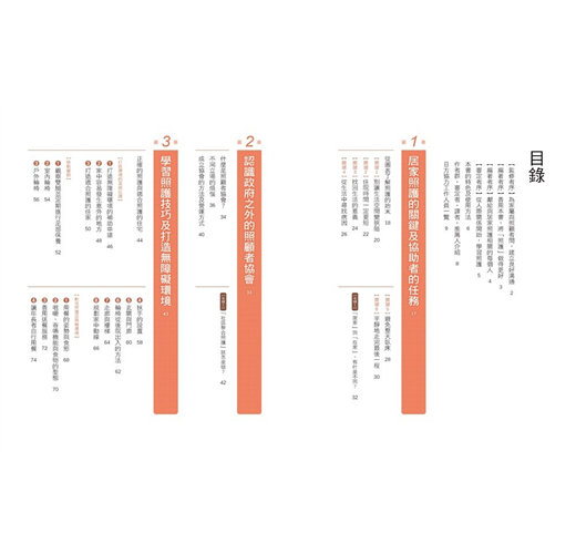 ‧照護不該充滿壓力,照顧者想法及長輩需求都該顧到許多人常因照護被迫離職或犧牲自我,生活從此失去品質,內心的痛苦常常轉為難以說出的壓力,甚至也出現因不堪照顧父母壓力,最後選擇結束生命的案例也時有所聞。本書的作者群也是站在照護第一線的專家們表示,「用一意孤行的方式進行照護,或獨自攬下照顧責任,容易釀成悲劇;照顧者必須懂得向外界求援」。因此,本書從理解「照護」的意義開始,提供最全面、最詳細的資料,包括: