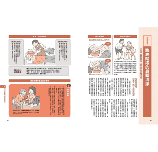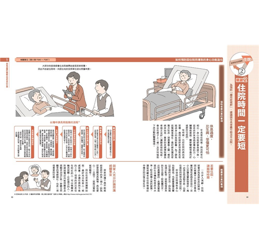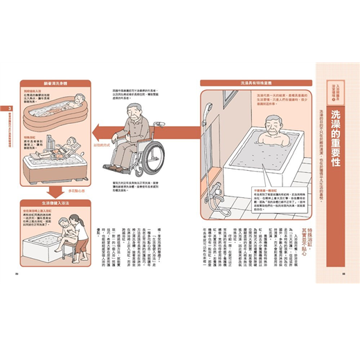 ►【詳細圖解照護技巧】包括居家動線、用餐及排泄環境等,提供最適合的建議。‧居家照護需要空間,包括推輪椅進出、協助沐浴等,空間太狹窄將不利於照護。