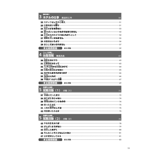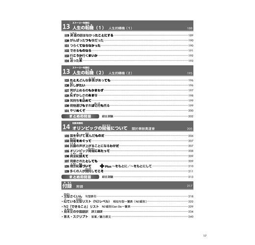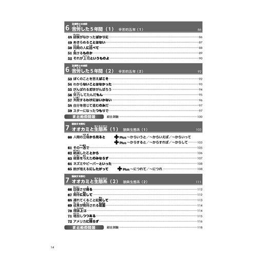 本書完整規劃14章、139個 N2必學文法項目,每章分配4~8個項目,方便讀者自學或課堂教學安排進度。
