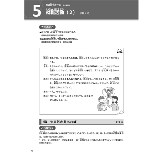 本書以日檢「Can-do」精神,將日檢文法融入各種生活情境中,如天氣預報、科普文章、美食新聞、商品開發、演講致詞等,實用生動的會話或文章,搭配可愛的插圖,文法不再枯燥,讓學習者能將課本所學實際運用在日常生活中。