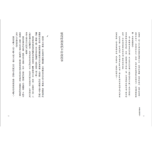 瘟疫時期我們說故事,故事並不消滅孤獨,而是讓我們在各自的孤獨中,感受到聯繫,以自身承擔及反抗命運。