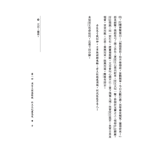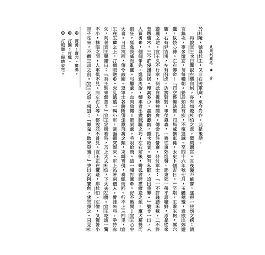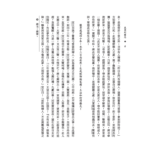 《東周列國志》是記載東周列國事跡的小說,它的特色在於將歷史予以小說化,既可當小說看,又可當歷史讀。其內容絕大部分都是可信的史實,與一般虛構的小說不同,甚至可說是趣味化的一部東周歷史。因為是根據經籍編撰而成,所以小說在用語方面多承襲原文,或稍加語體化,或許在文字上不如《水滸傳》、《西遊記》等通俗易懂,但其所具有之歷史價值,則是不容忽視的。本書校注者以審慎嚴謹的態度,將小說中一些明顯與史書矛盾錯誤之處加以校正,俚俗難懂的詞語並有簡明注釋,加上人名、地名皆有標線,使本書更具可讀性。