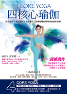 《4 CORE YOGA四核心瑜伽》就是因應市場上學員普遍的需求而設計!內容包含200結合瑜伽、徒手重訓、皮拉提斯及空中瑜伽四種健身系統的精華,實用的全身性訓練有效達到:肌肉控制力全面強化(肌力核心),身體活動度全面提高(伸展核心),協調性、穩定度、平衡感全面加強(平衡核心),呼吸模式及心肺功能全面完善(呼吸核心)。同時在練習的過程中,流動的身體訓練還能提高專注力,再「由身入心」獲得身體與精神的連結,進而獲得精神層次、心靈境界的專注、自我調整、放鬆、滿足、提昇!
