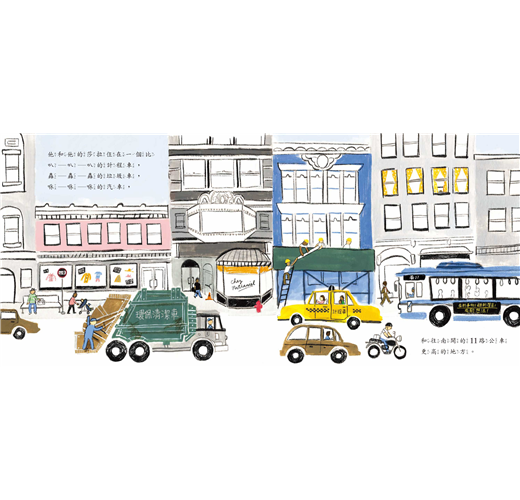 「跟窗外吵吵鬧鬧的城市不同,楚門和他的沙菈喜歡安靜沉思。作繪者用短短幾幅跨頁巧妙勾勒出主人和寵物間的真摯情感。水彩柔和的色調與筆刷奔放的筆觸描繪了楚門在家中的冒險,並從小烏龜的視角呈現他眼中所見的大世界。」
