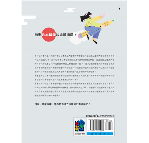 第一位作者吳嘉文教授,他在日本東京大學獲得博士學位,並在國立臺灣大學從事教育和研究工作超過10年;另一位作者三木健教授在京都大學取得博士學位,並且在國立臺灣大學海洋研究所從事了10年的教育和研究工作後回到了日本。這2位教授體會到許多學生在申請世界各個大學或研究機構的留學時,常常沒有一個最佳的選擇方法與策略,必須針對特定國家的文化和申請制度加以深入了解,才能有最有效之準備與申請程序。如果您想在日本留學,沒有比這本書更好的資料了。本書是由在日本和臺灣兩國都十分活躍的作者所撰寫,提供了許多寶貴和有價值的情報。