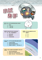 STEP 1情境學習∣教育性★★★★★圖像式漫畫結合生動可愛的人物和驚險刺激的故事編排,加深小朋友對於科學知識的理解和如何運用在生活中,激發他們對自然與科學的好奇心。而書中團隊合作的故事,則可培養小讀者們建立勇於挑戰與冒險的精神,藉此養成體貼他人的個性。