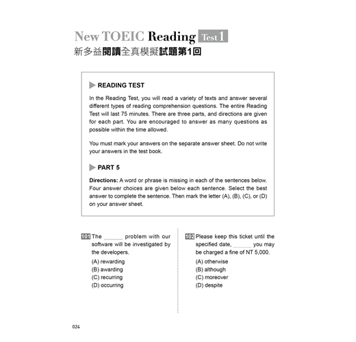 最新著作:《TOEIC新多益考試金色證書一擊必殺-閱讀全真模擬試題》