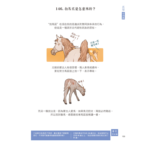 ◎聖誕老人原本是穿綠衣服、古希臘的雕塑為什麼都要裸體、拍馬屁是怎麼來的、說大話為什麼叫吹牛、為什麼有錢的女婿叫金龜婿、在古代粽子是夏至的標配啦……