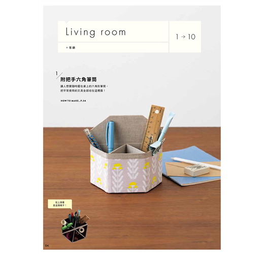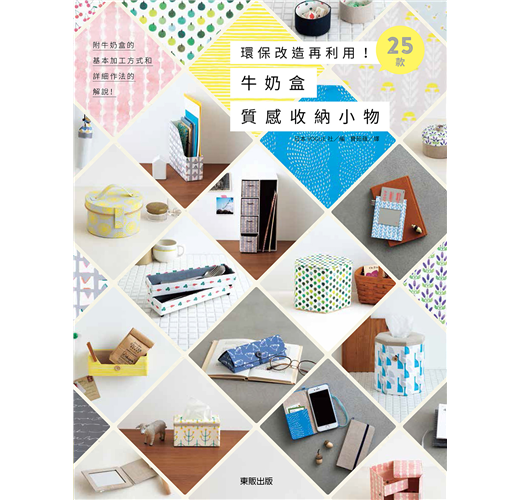 可直立也能橫擺的附抽屜筆記文件收納盒、多隔層六角直立式筆筒、超便利抽取式塑膠袋收納套、三段開闔式飾品收納盒、附小口袋手機收納套、風琴式卡夾收納包…;凌散的桌上小物、文具用品、心愛首飾配件,可裝飾也能佈置的環保手藝,讓廢棄不用的牛奶盒從此小兵立大功,為家中的擺設更增添美麗又實用的一隅。