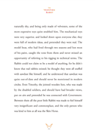 絨毛兔在玩具櫃和育兒室的地板上待了很長一段時間,沒有人注意他。他生性害羞,又只是用天鵝絨布做成的玩偶,有些昂貴的玩具就瞧不起他。那些精美的機械玩具常常輕視其他玩具;他們身上充滿新奇的設計,而且自以為就是真的。像那艘模型船雖然已經兩年,身上的漆也快掉光了,卻還是洋洋得意,絕不會錯失用專業術語展現自己精良裝備的機會。絨毛兔稱不上是模型,因為他不知道真的兔子長什麼樣子;他以為所有的兔子都像他,體內塞滿木屑,他也知道木屑早就過時了,在這些時髦玩具面前千萬不能提。即使是那隻用壞掉的士兵玩偶做成、名叫提摩太的木頭組合獅子,也跟著裝腔作勢,假裝自己就是高高在上的統治者(他的眼光應該比較開闊才對)。夾在他們中間,可憐的小絨毛兔覺得自己平凡無奇,一點都不起眼,唯一對他仁慈和善的只有那隻真皮馬。