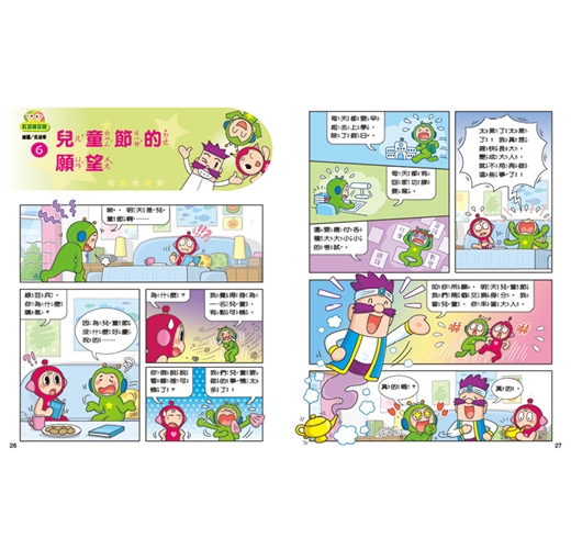 1.趣味漫畫好閱讀:大開本的全彩原創短篇漫畫,最適合國小低中年級學生閱讀。
