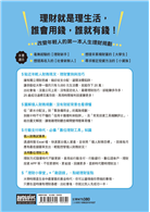 光是書名就已經夠直球切入重點了,你只需要問自己:「想不想與這件事有關?」你對於「財」很有興趣,但有「理」它嗎?大家都嚮往更好的生活,但當大家都擁有同一筆數目的錢財時,往往能築夢踏實的,都是有規劃並且有條理地掌管自己錢財的那個人,而他們就能夠擁有更多選擇權,將財富握在手上,並往下一個目標前進。但通常大家就是不肯邁出那實踐的第一步。