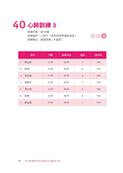 每個跨頁是一份課表,左頁表單,右頁動作圖