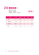 每一份課表占一個跨頁,左頁表格,右頁動作圖解,讓你能夠一眼掌握所有資訊。要照課表安排的動作順序進行,並且盡全力達到目標。