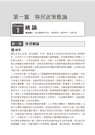 1. 本書分為五篇:一、移民政策概論;二、入出國及移民法;三、臺灣地區與大陸地區人民關係條例;四、移民法規相關法令彙編;五、近年試題及解析。
