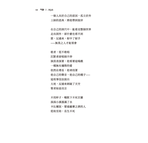 ◎將不同來源的詩歌寫本重新做系統性的梳理,精選出近兩百首詩歌,讓讀者深刻體會卡比爾的靈性智慧。