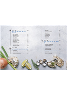 海鮮食材的鮮與腥,在於一買回來的前置處理與保存是否做得好。在料理小教室裡,一一講解不同食材的前置處理與保存、還有適合的烹調方式。而燉飯又是海鮮料理最常搭配的主食,能吸附比麵條更多的醬汁與食材鮮味。因此,除了基礎高湯與蝦油製作,也一併收錄了做出美味燉飯的訣竅。