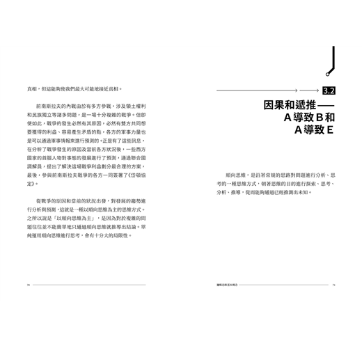 本書的各種說明,也飽含許多案例及故事,讓讀者理解自己的「思維工具箱」中還缺少了哪些能力,並且對人類大腦獨有的思考方式進一步建構基本的習慣,讓決策與表達更有邏輯性。