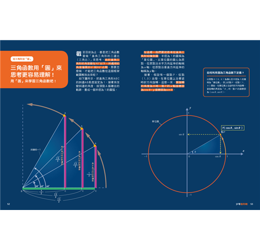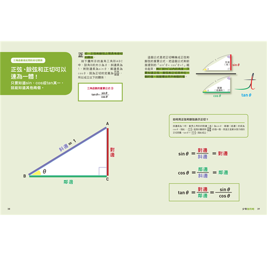 三角函數是數學的基礎領域,而且應用很廣,從測量土地、建置無障礙坡道到「波」的概念,都跟三角函數有關。正是由於三角函數可以在生活中驗證應用,所以對於數學學習特別重要。能愉快地學習三角函數,就比較可能跟數學發展出正向的關係。透過《三角函數:三角函數的基礎入門書》的豐富圖解,分章列點,突顯重點,讓讀者可以掌握脈絡,快速學習、有效學習。本書也整理了餘弦定理、正弦定理等重要公式,方便複習。