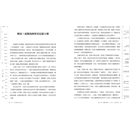 內文版面兩側附上中西簡易大事紀年表,讓讀者在讀亞洲歷史的同時,可以清楚明白地知道當時國際上發生的事情。