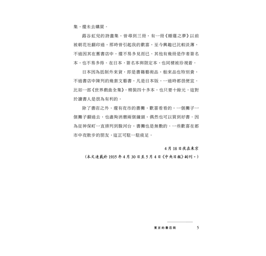 本書分為印象、談藝和日記三部分,分別從三個維度記錄了作者1935—1936年間在日本的學業與生活狀況。