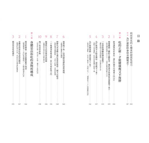 本書內容皆由作者親身實證,並經過嚴謹的醫學研究證實有效,透過6種提升免疫力的食材,加上間歇性斷食與改善腸道環境的三大步驟,若能按照書中指示實行,一定都能看得見效果。從一般人都能簡單做得到的改善飲食習慣著手,不但可以獲得健康提高免疫力,還能減肥成功而不再復胖!