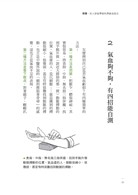 另外,作者也教我們怎麼正確泡腳:溫水的高度要高至膝下,而不能只在足踝。蔥葉泡足浴可以預防感冒提升免疫力,只要照顧到了足部的重要穴位,許多病是很難生出來的。這個經驗分享也讓我很開心,且也想嘗試看看。因為我在臨床上治療感冒時,也愛用蔥白來散寒,卻沒思考過用來足浴。