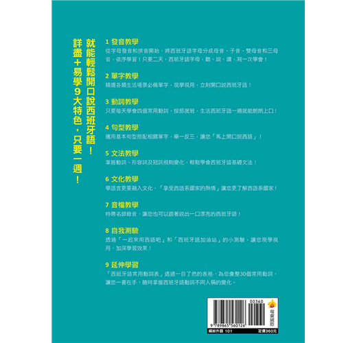 商品特色★詳盡+易學9大特色,只要一週!就能輕鬆開口說西班牙語!