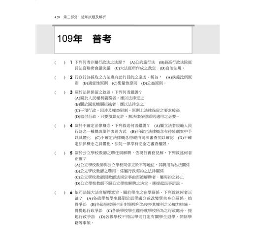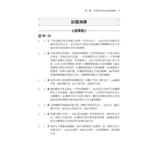 相信很多人常常覺得,明明老師上課教的概念我都懂,應該背的法條和重要實務見解也都有花了很大心力去記憶,但為什麼在遇到考題時,總是覺得時間不夠,寫的卡卡的,往往不知道題目究竟在問什麼?選擇題的選項好像都模稜兩可,最後只好使用刪去法作答,有時甚至刪完後還剩下兩個答案可選,真是令人苦惱。而在遇到申論題,又總是不知該從何下筆,到底要怎麼寫才能形成一個精確而完整的論述,達到出題老師要的方向。其實觀念的建立只是基本功,真正重要的還是大量的題目練習,畢竟考場上要考你的不只是背誦,而是考驗你如何將所學靈活運用在生活中可能會發生的事實。
