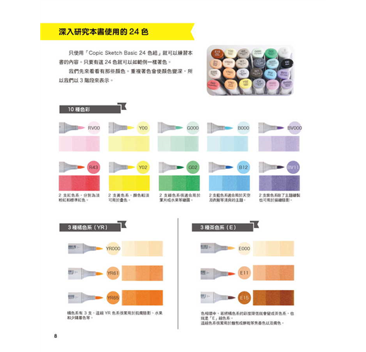 本書只用了「Copic Sketch Basic 24 色組」的顏色。