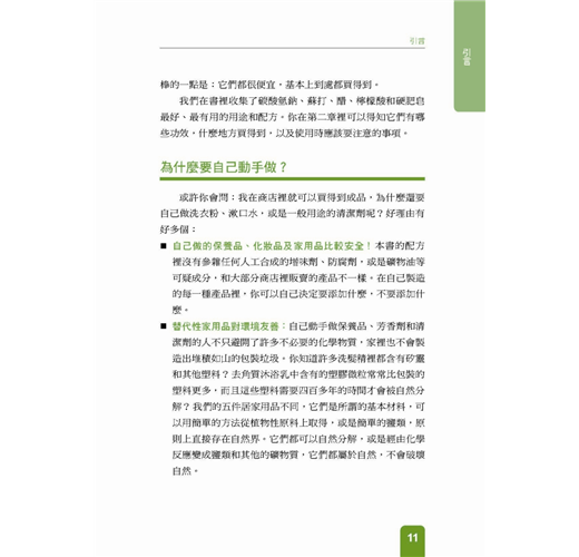 價格不貴,重點是做起來簡單,只要按照步驟就能做出洗碗劑、洗衣粉、萬用清潔劑、去汙劑、漱口水,護膚護髮及芳香沐浴用品。親手打造個人生活風格,實踐環保、永續的理念。