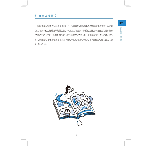 本書共有五位角色登場,人物個性鮮明又活潑,配合課程及不同的會話場景,更有相對應的插圖,能增加日文學習的樂趣。