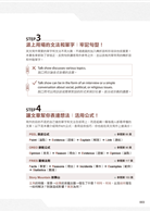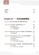 以正、反例句向讀者說明各段落的構句技巧,並以表格整理寫作必備的「形容詞」、「轉折詞」、「連接詞」及「片語」!