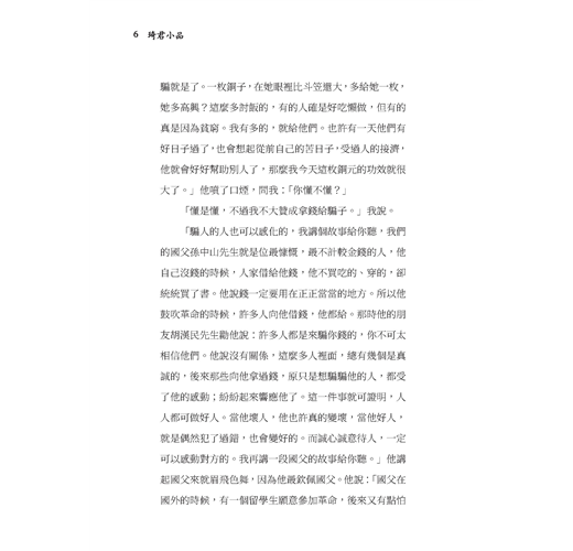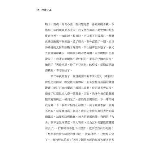 從琦君的作品進入文學的世界,更是一件幸運的事。琦君自幼從家庭教師習古文,有深厚的中國古典文學基礎;中學、大學讀教會學校,接受五四以來新文學的刺激;更有良好的英語能力,遍讀西方經典。這三方厚實的基礎,融攝於她的文字,典雅卻不雕琢;流暢而不甜膩。以白話文承載中國古詩詞的音韻之美,琦君成功地融鑄了她語言的風格。