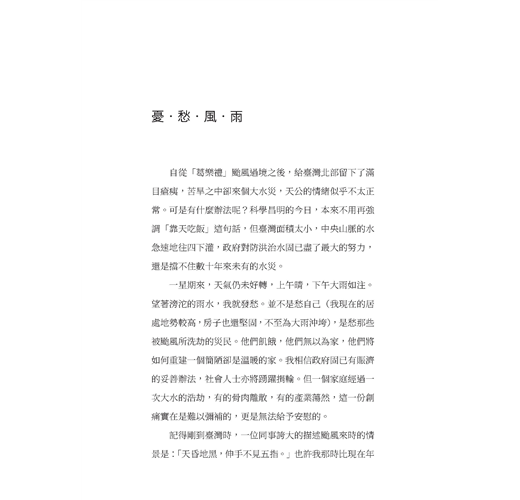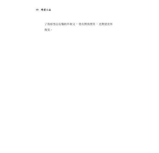 看完最後的校樣,我感到十分的空虛,回顧一下這許多年來,我竟始終沒有寫出一篇十分有份量的長篇,而儘是些三五千字以內的短文,內容又是如此的平凡不足道。可是儘管它們短與平凡,我卻總捨不得丟棄,因為我珍惜寫作時的一份情感。記得我在散文集《煙愁》的後記中曾說過這樣的話:「我若能忘卻童年,忘掉故鄉,忘卻親人師友,我若能不再哭,不再笑,我寧願擱下筆,此生永不再寫,然而怎麼可能呢?」這也就是