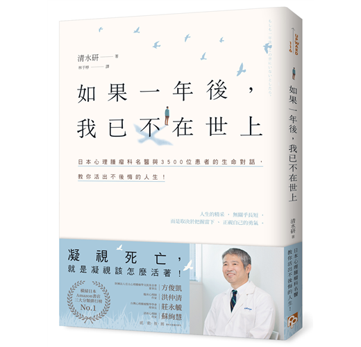 根據統計,得知自己罹患癌症的病患,5個人中就有1人得到憂鬱症,而1年內的自殺率更是一般人的24倍,這是因為我們從來沒有認真思考「死亡」這個課題。「如果一年後,我已不在世上」的話,你還能一成不變地繼續過現在的生活嗎?還是會去做其他更重要的事情呢?
