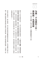 如果你是一個崇尚成為自由工作者的人,這是一本很重要的指南書。作者將「正職上班」及「自由工作者」的優勢與挑戰,透過機會成本及案例,在書中清楚的列舉出來。