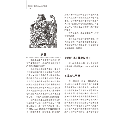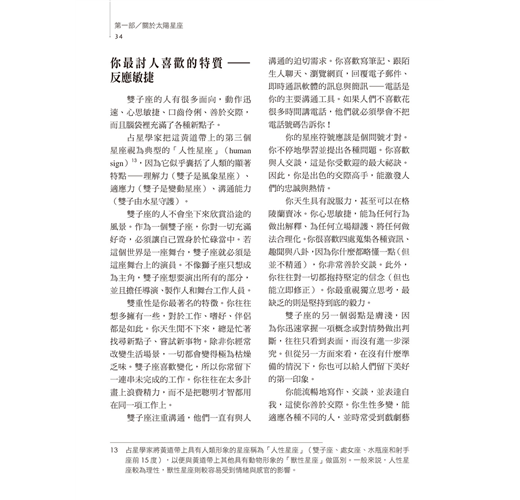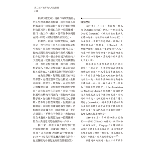 以初階書來說,我覺得這本書特別詳細,每一個環節都提到了……好的書不只是能讓人家理解書的內容,還能觸發讀者的探索之心,看到相關資料不會怯步,可以很容易的吸收,對於推廣占星學問來說,這本書是一個福音。